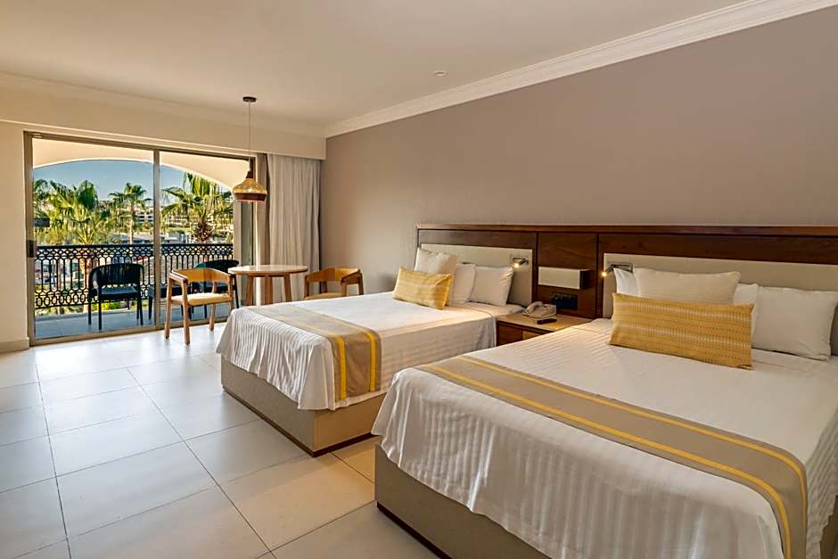Wake up each morning after a restful night's sleep and watch the beautiful colors of the sunrises over the Sea of Cortez while enjoying a cup of coffee from your balcony. This comfortable accommodation has 452 ft2 of space for you to enjoy with your family. Inside you will find a king-size bed or two double beds, a private bathroom, a hidden folding bed, Wi-fi signal and for your comfort, a mini bar with a daily assortment of beer, soft drinks and purified water. This room also includes the following amenities: Mini fridge restock daily, Toiletries, Room service 24 hr (5 usd / delivery), Iron & iron board, A/C, Ceiling fan, T.V, Safe-box, AM/FM radio alarm, Turn down service, Pillow menu, Coffee table, Coffee maker, Night tables, Ice bucket & cups, Towels, Closet w/ hangers, Magnified mirror, Wake up service, iPod dock speaker.