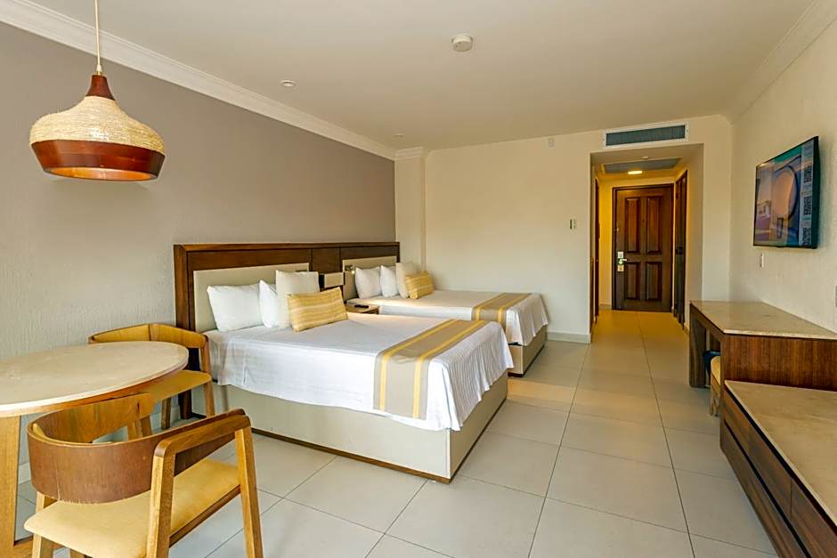 Upon entering this cozy all-inclusive room, you'll be surprised by the comfort that you will find in its spacious 452ft2 square designed and decorated with care for your rest and leisure. In this room you will have a beautiful view of the resort gardens or look-out hill (city view); Inside this accommodation you will find a king-size bed or two double beds, a private bathroom, a hidden folding bed, Wi-fi signal and a mini bar with a daily supply of beer, soft drinks and purified water for your comfort. This room also includes the following amenities: Mini fridge restock daily, Toiletries, Room service 24 hr (5 usd / delivery), Iron & iron board, A/C, Ceiling fan, T.V, Safe-box, AM/FM radio alarm, Turn down service, Pillow menu, Coffee table, Coffee maker, Night tables, Ice bucket & cups, Towels, Closet w/ hangers, Magnified mirror, Wake up service, iPod dock speaker.